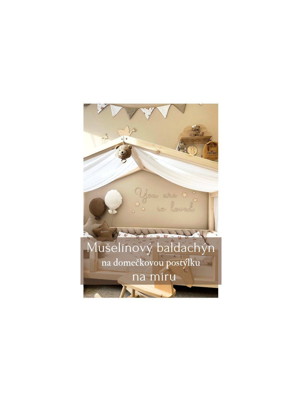 Lehký a vzdušný baldachýn z mušelínu pro domečkovou postýlku. Vytváří útulné místo na spaní i hraní. Délku uveďte do poznámky.