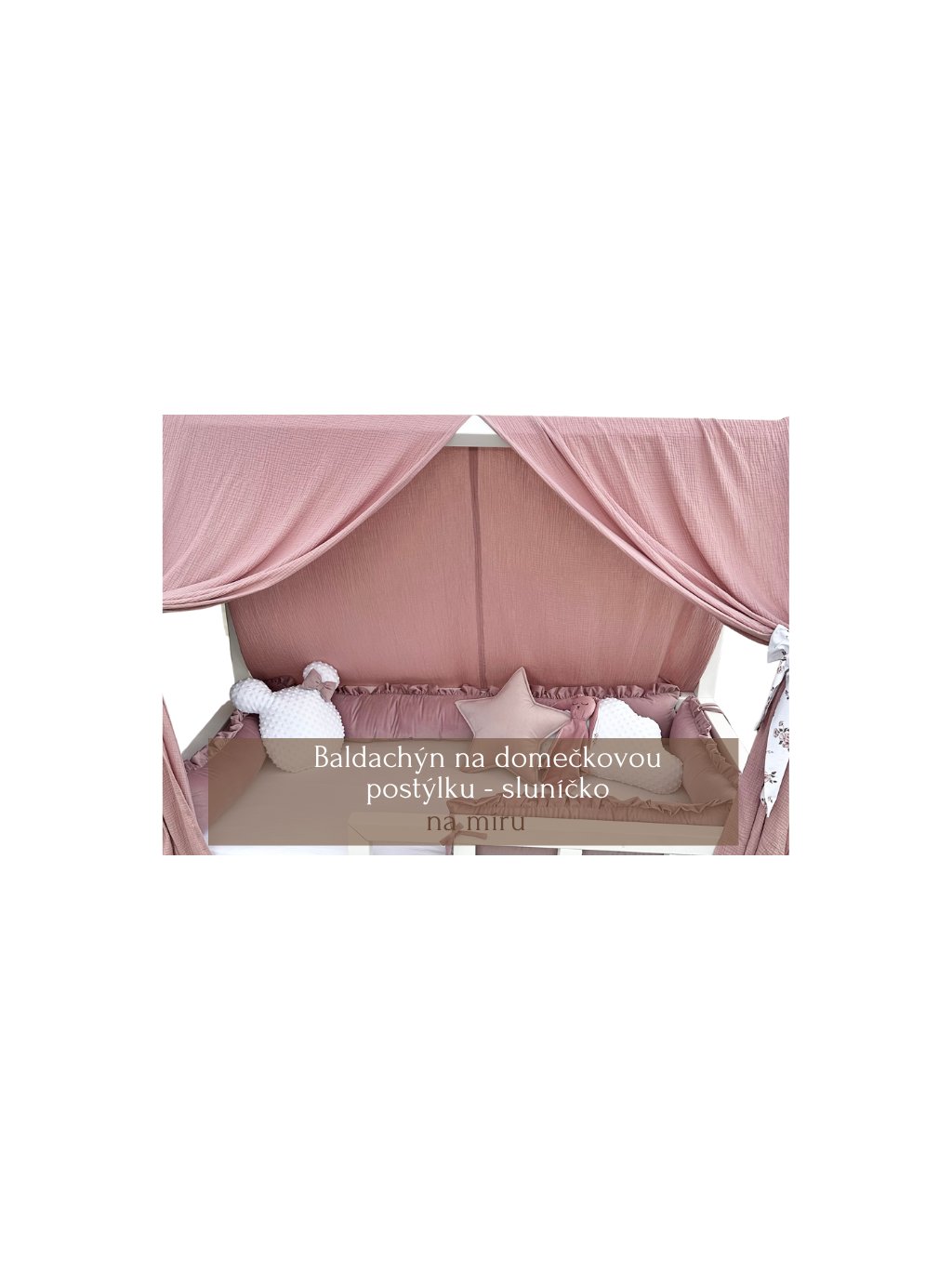 Lehký a vzdušný baldachýn z mušelínu pro domečkovou postýlku. Vytváří útulné místo na spaní i hraní. Délku uveďte do poznámky.