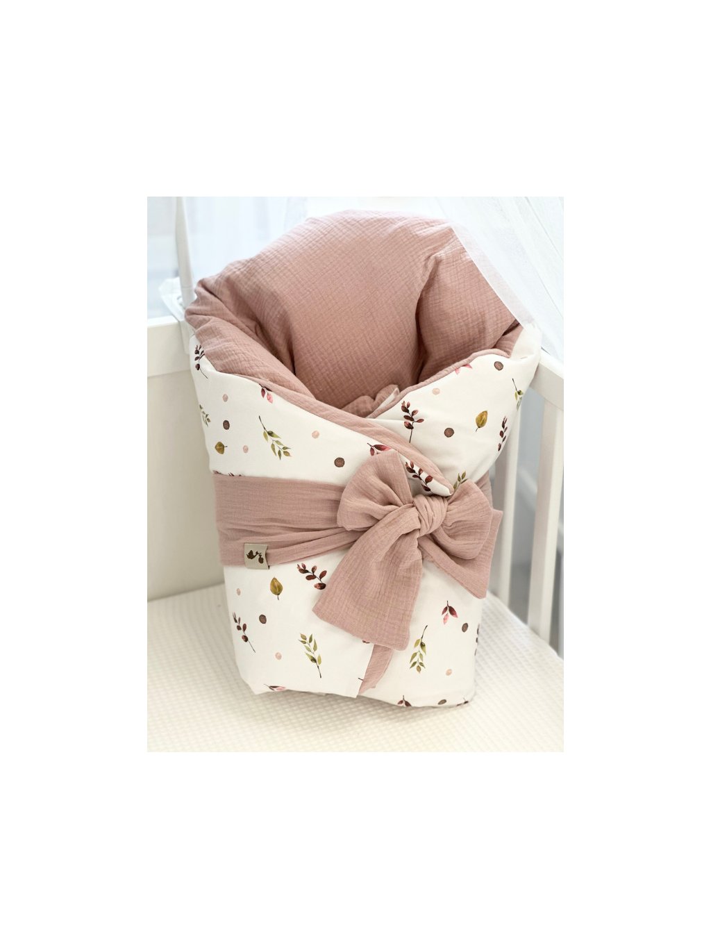 Luxusní krásně měkkoučká, nadýchaná, bavlněná péřová zavinovačka z pudrového mušelínu a lístečků.