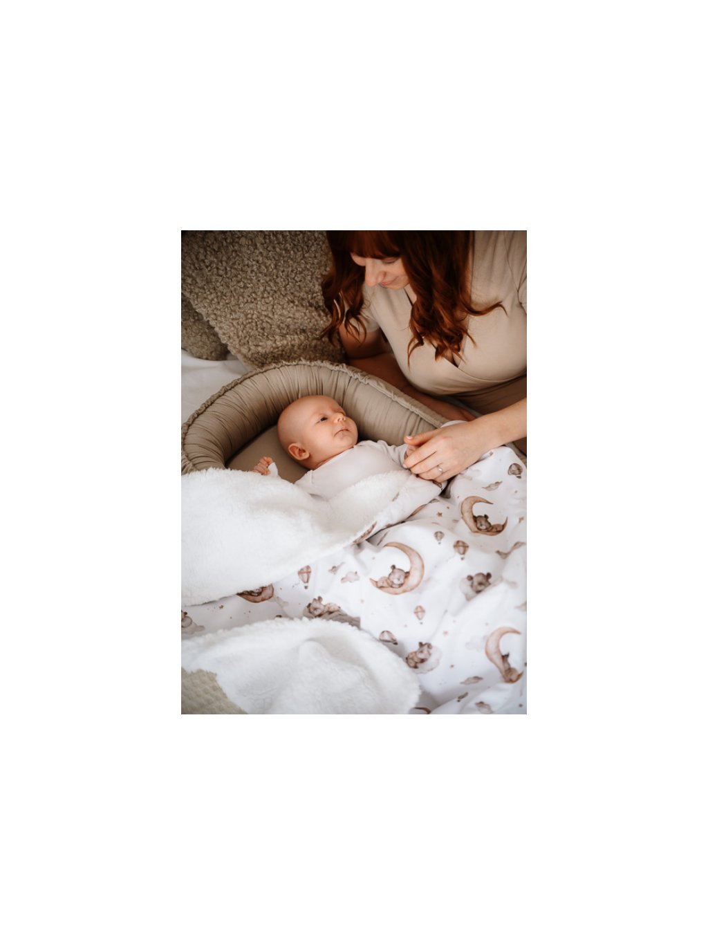 Dětská beránková deka z prémiové bavlny a měkkého beránka – ideální pro miminko do postýlky i kočárku