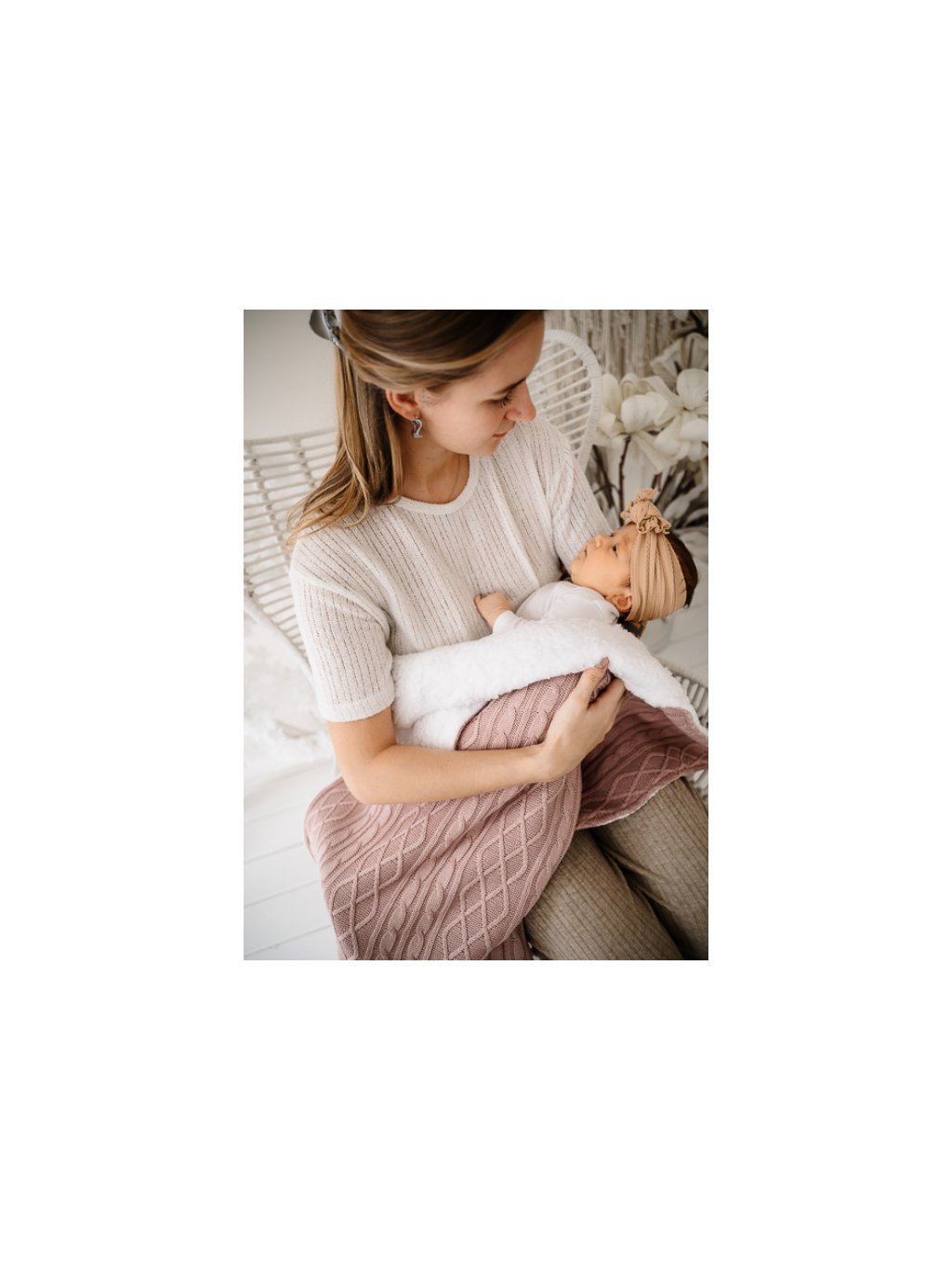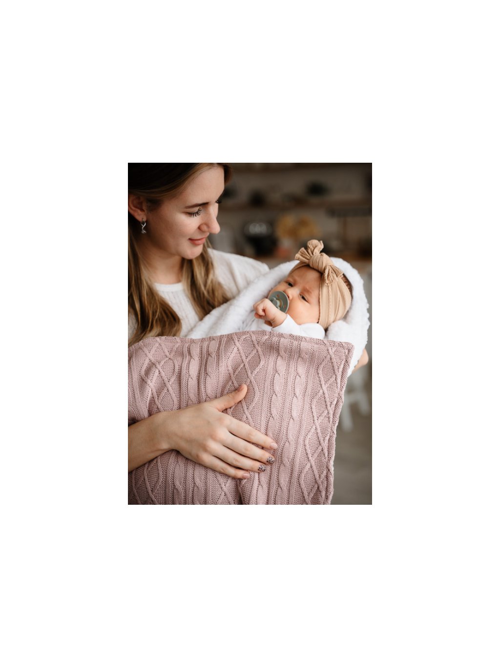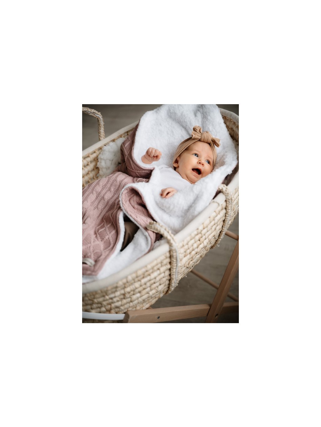 Beránková dečka - pletená pudrová se vzorem dětská beránková deka z pleteniny a hebkého beránka