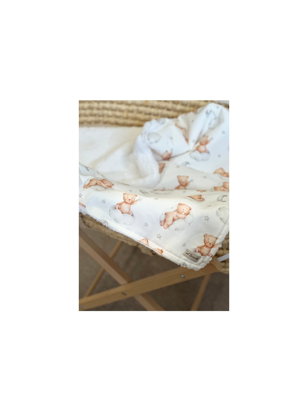 Beránková dečka - spící medvídci s bílým beránkem dětská beránková deka z prémiové bavlny a hebkého beránka