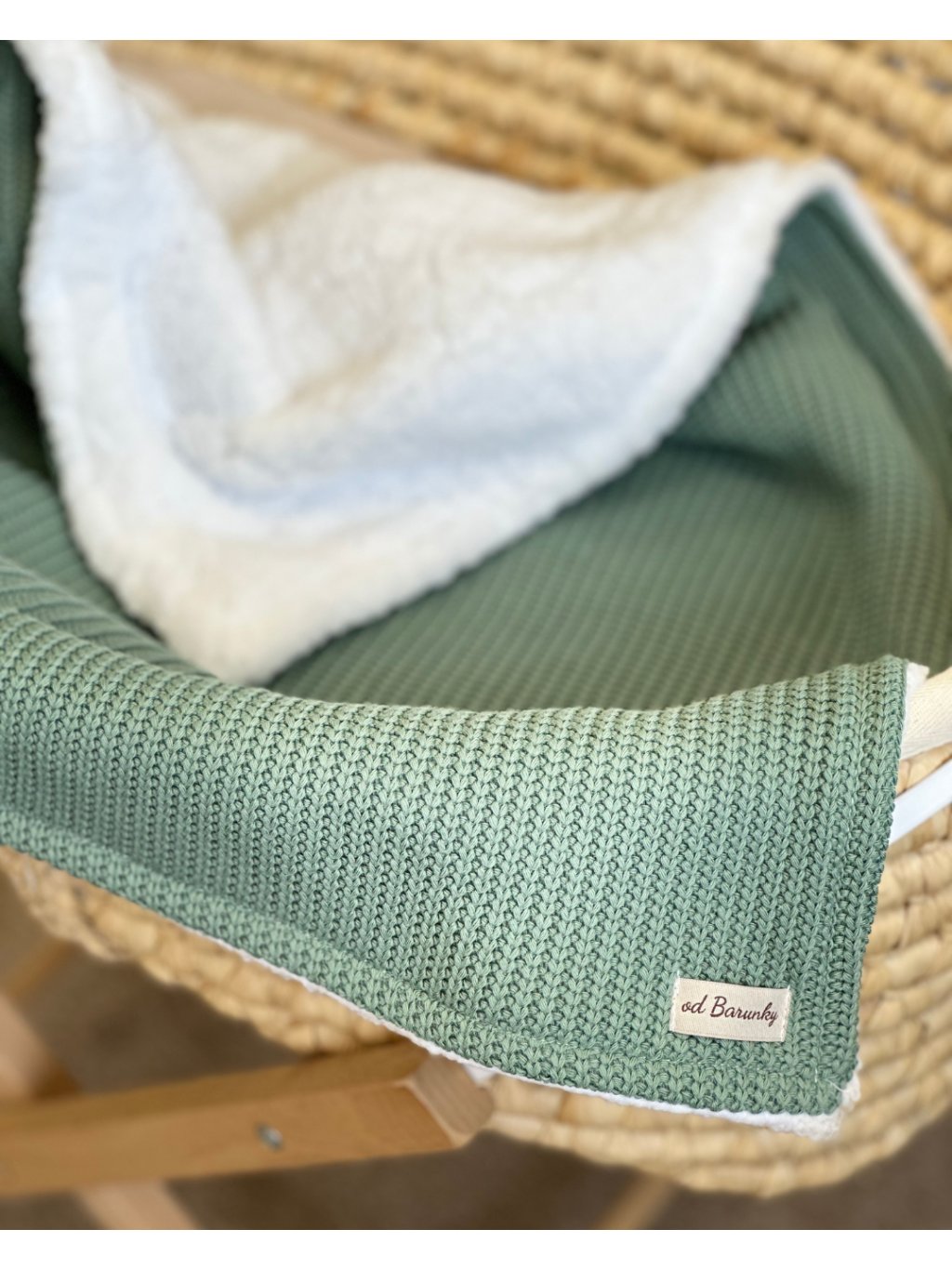 Beránková dečka - zelená pletená dětská beránková deka z pleteniny a hebkého beránka