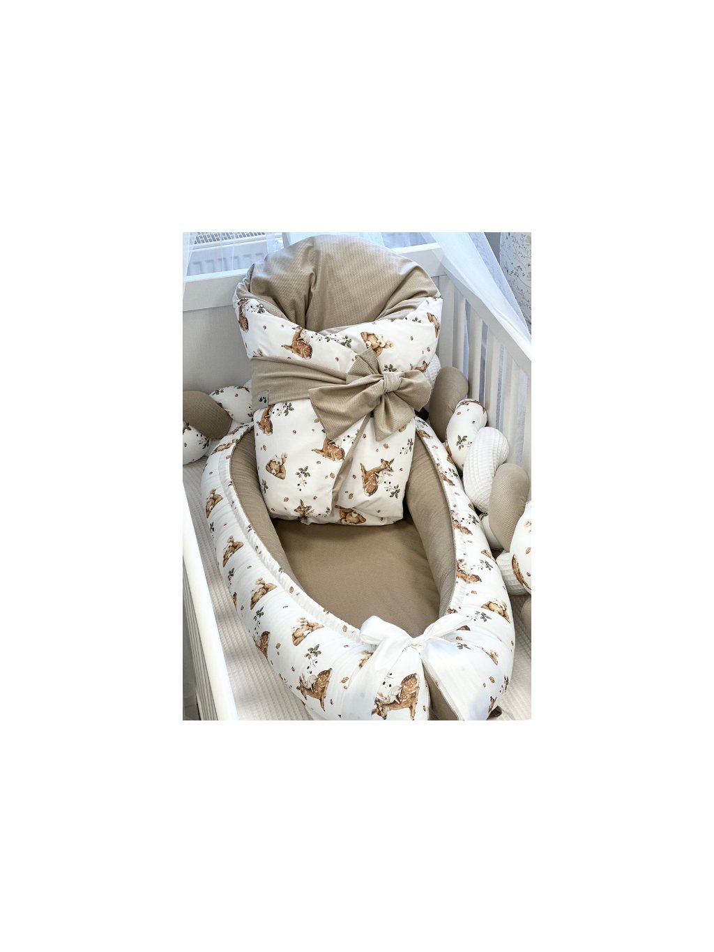 Béžová péřová zavinovačka se spícími lesními zvířátky
