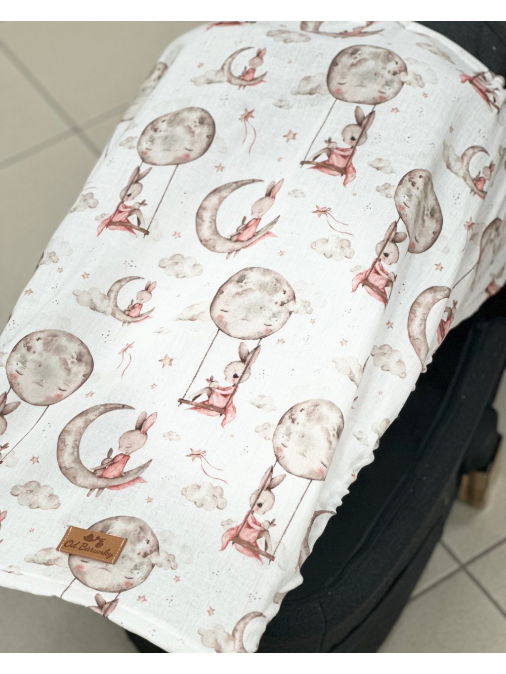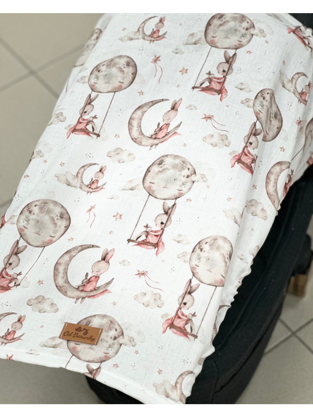 Clona na kočárek - zajíček a měsíc mušelín