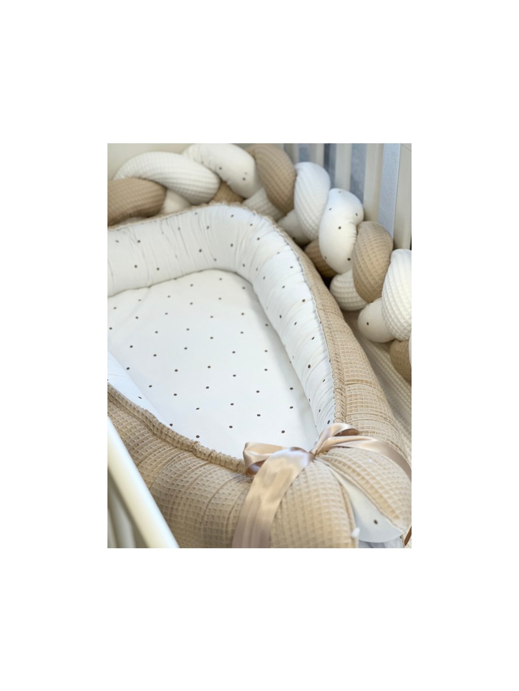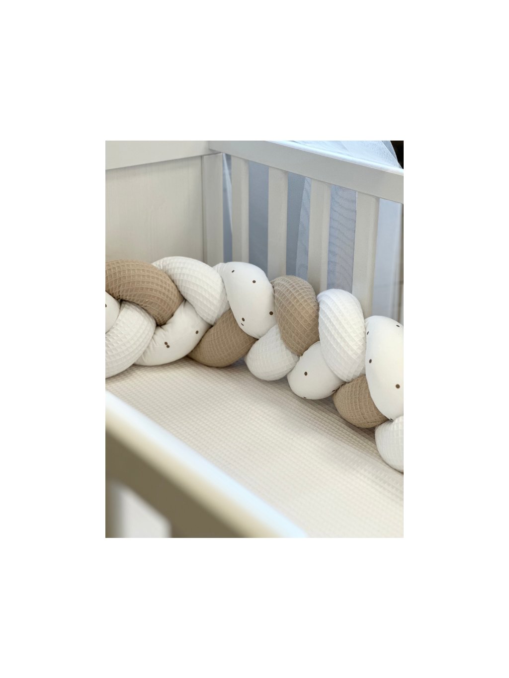 Copánkový mantinel - béžový puntík + béžová a bílá vafle copánkový mantinel do dětské postýlky