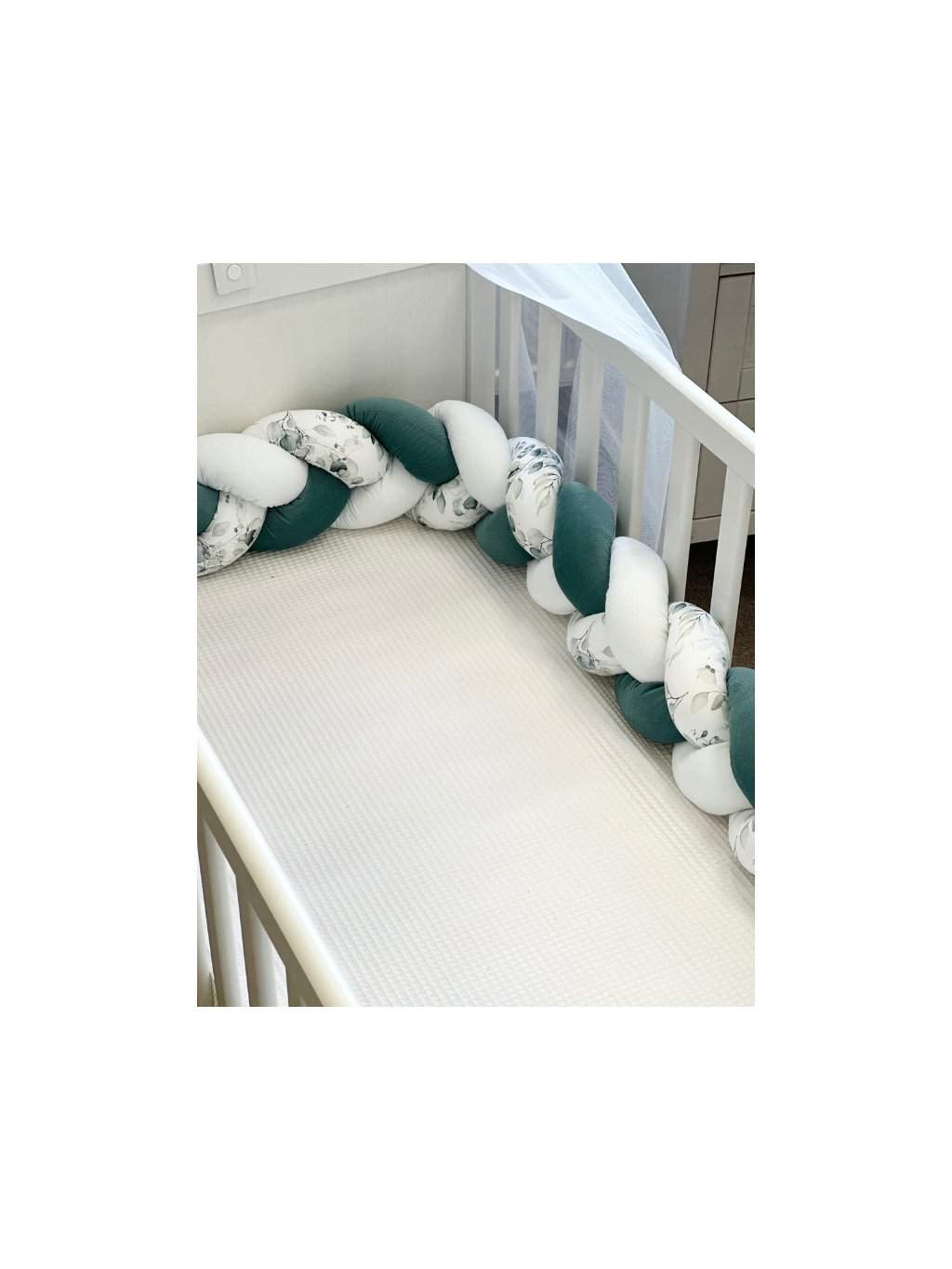 Copánkový mantinel - eukalypt + bílý a šalvějový velvet copánkový mantinel do dětské postýlky