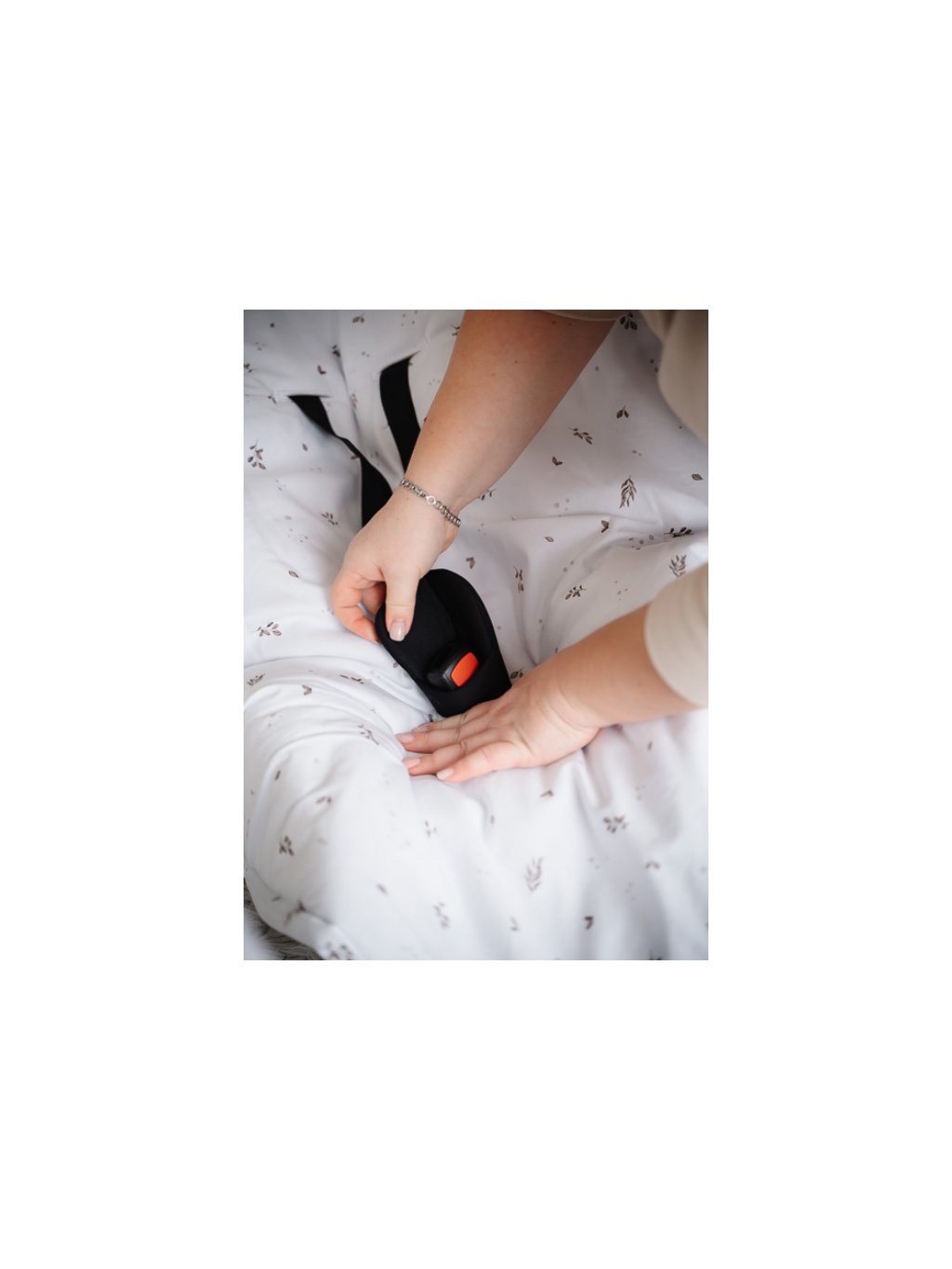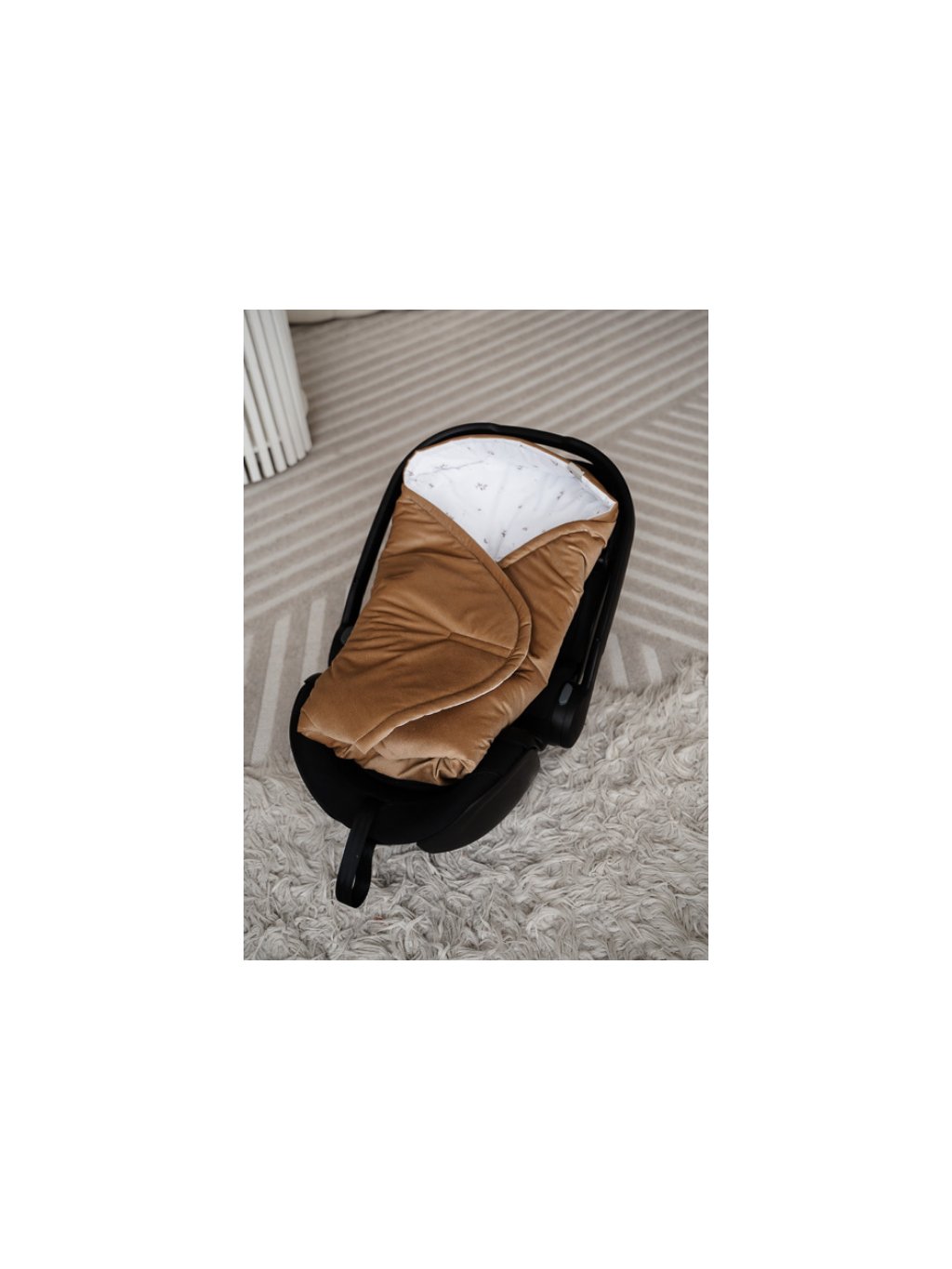 Dečka do vajíčka s obšitými otvory pro bezpečnostní pásy – karamelová s lístky