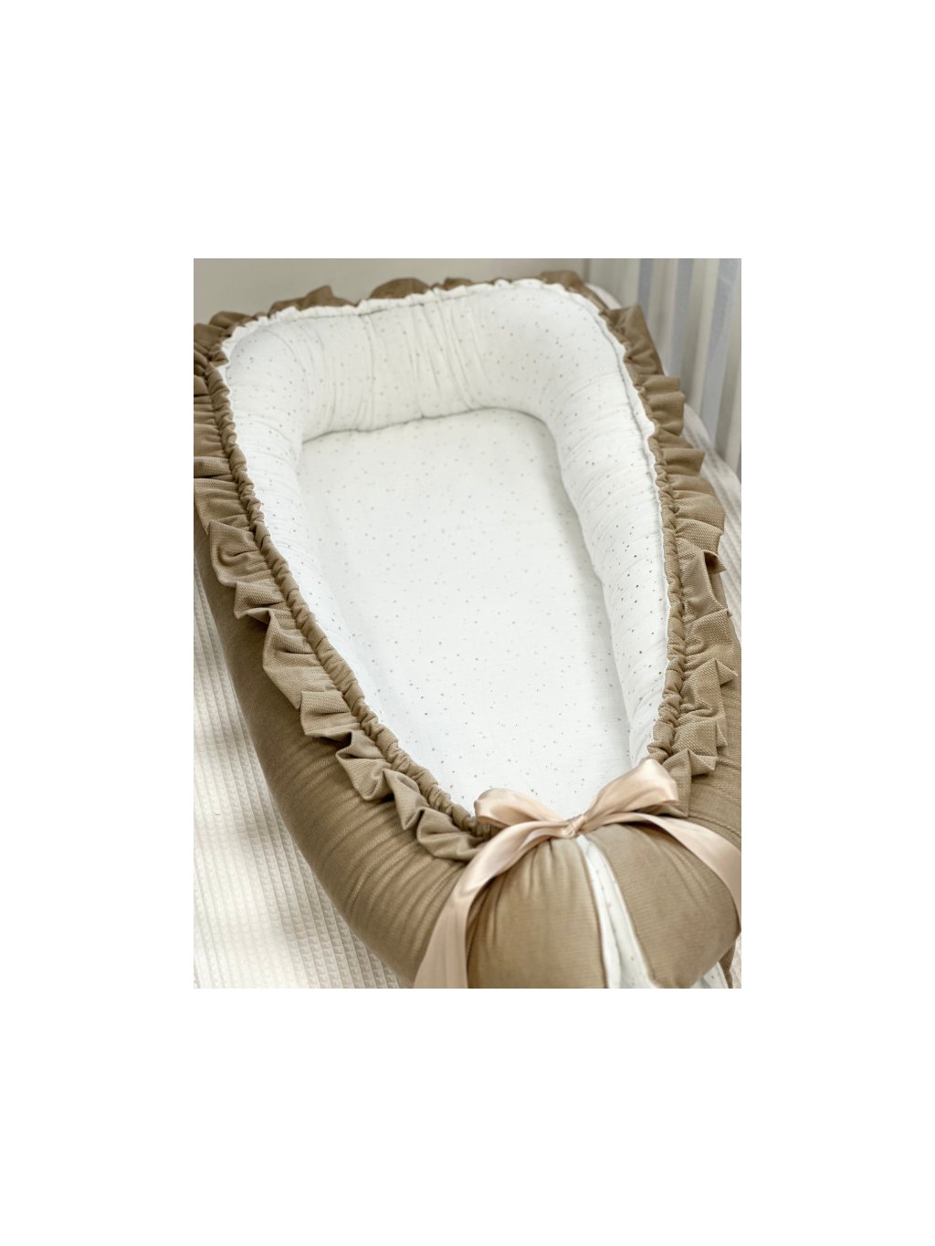 Hnízdečko pro miminko - béžové s mušelínem a volánkem