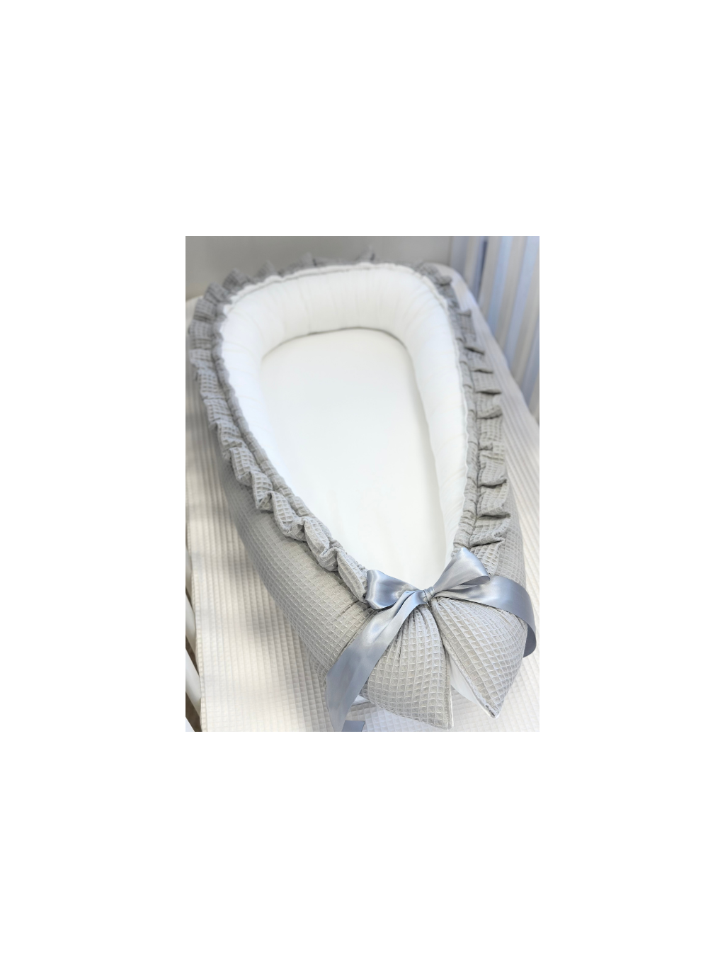 Hnízdečko pro miminko - vaflové světle šedé s volánkem