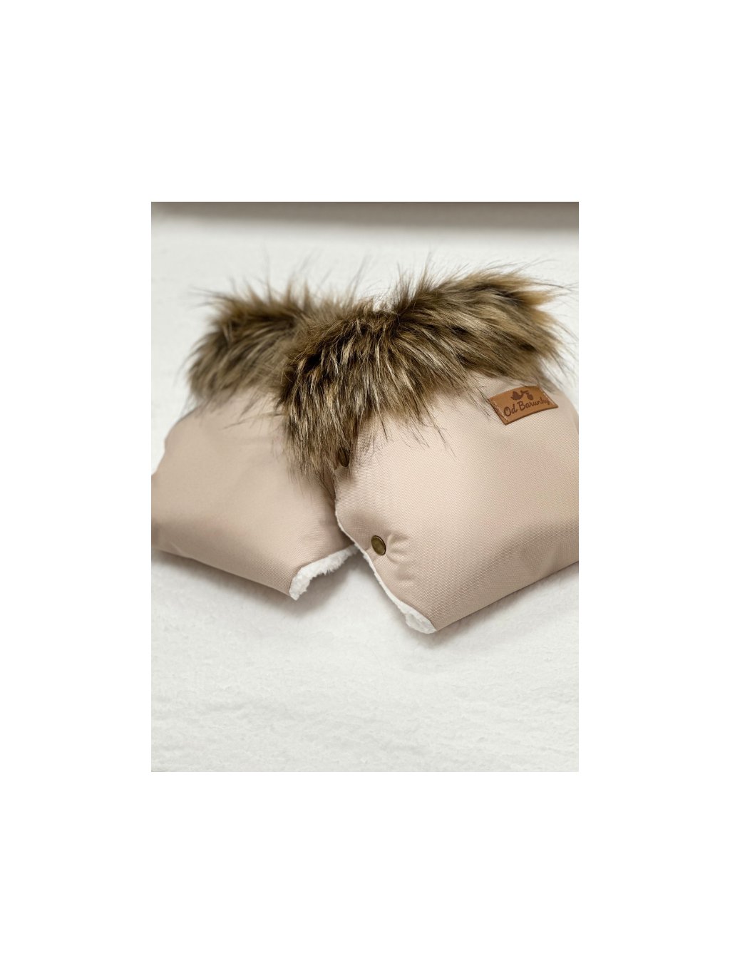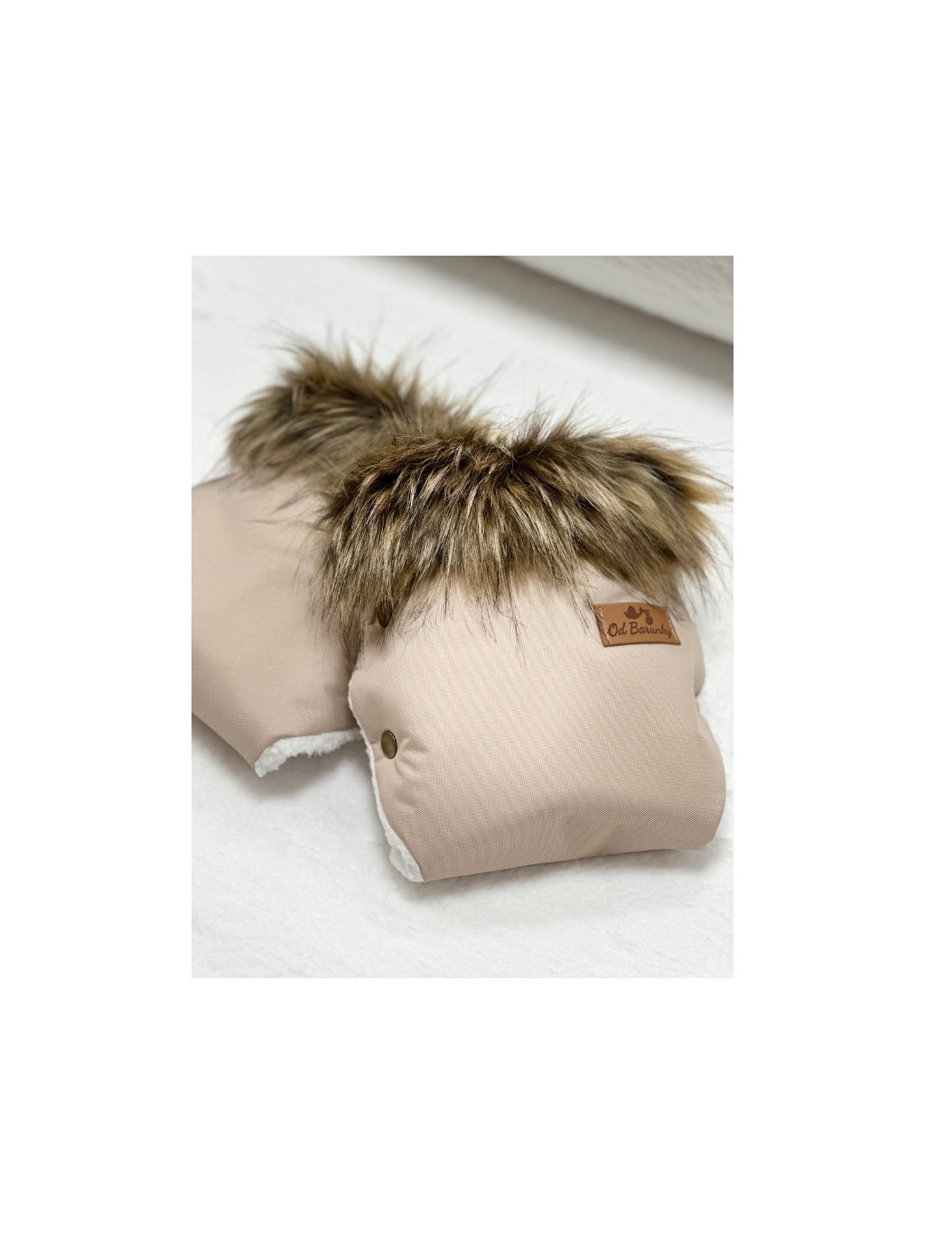 Hřejivé rukavice na kočárek - béžové s hnědou kožešinou