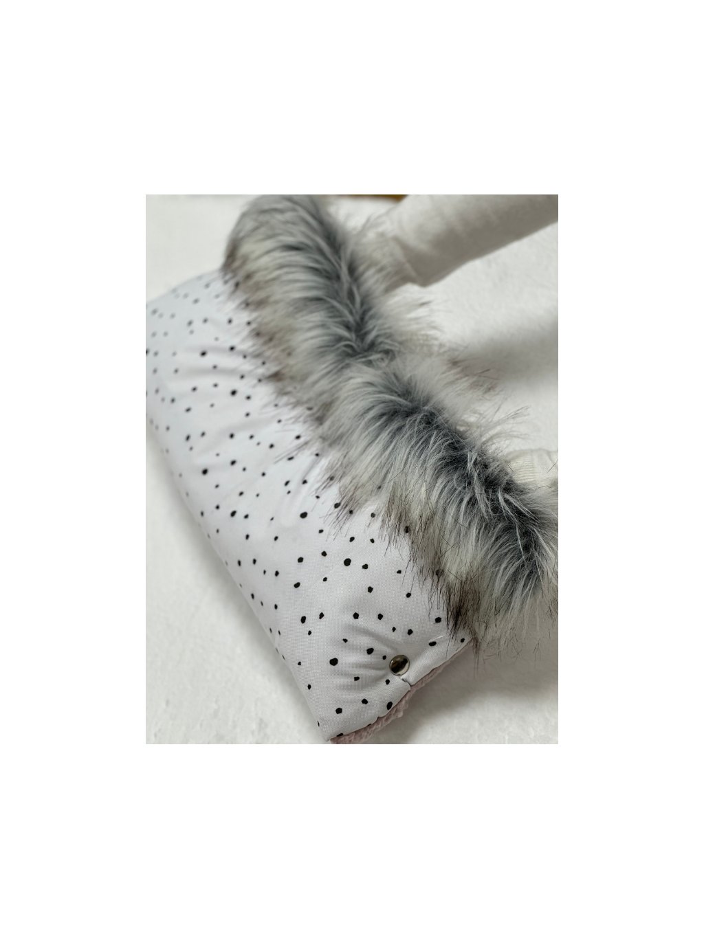 Hřejivý rukávník - bílý s puntíky, kožešinou a růžovým beránkem