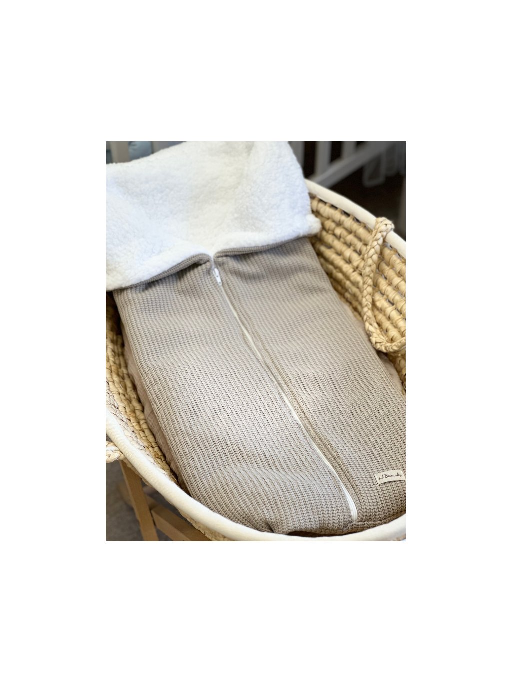 Jarní / podzimní fusak do kočárku - béžová pletenina s bílým beránkem