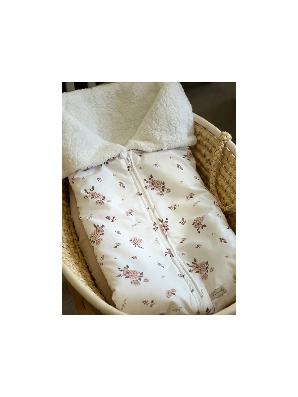 Jarní / podzimní fusak do kočárku - kytičky s bílým beránkem