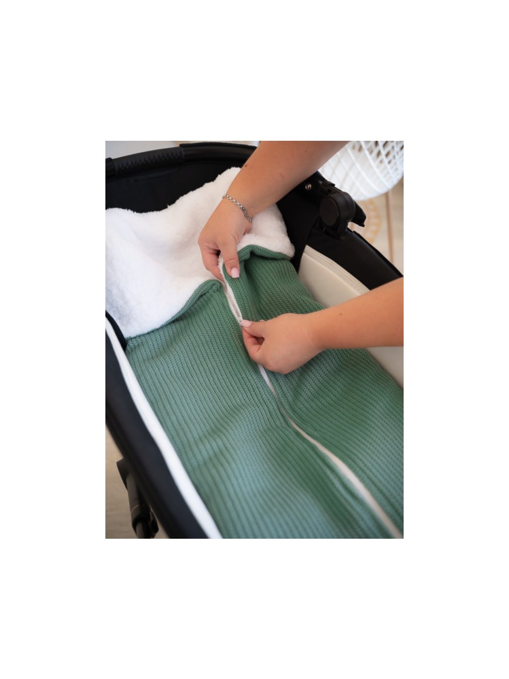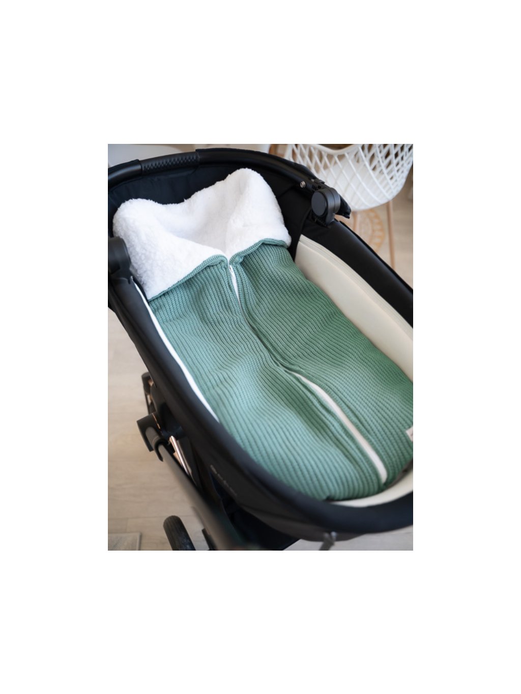 Jarní / podzimní fusak do kočárku - zelená pletenina s bílým beránkem