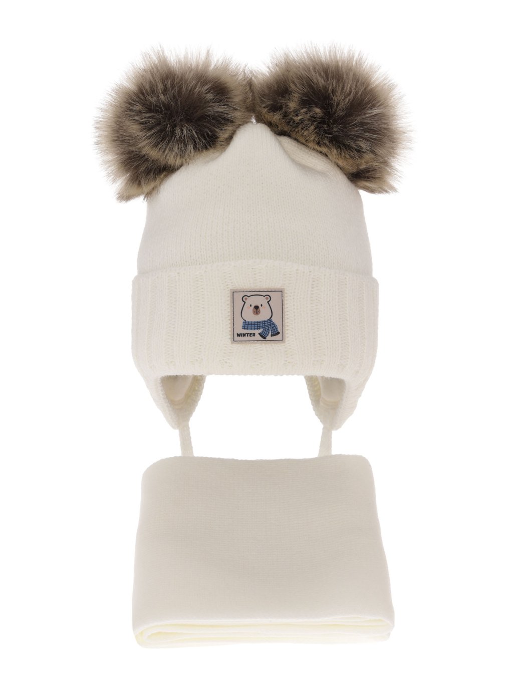 Komplet zimní : čepice a šála krémový s dvěma bambulemi Jewel