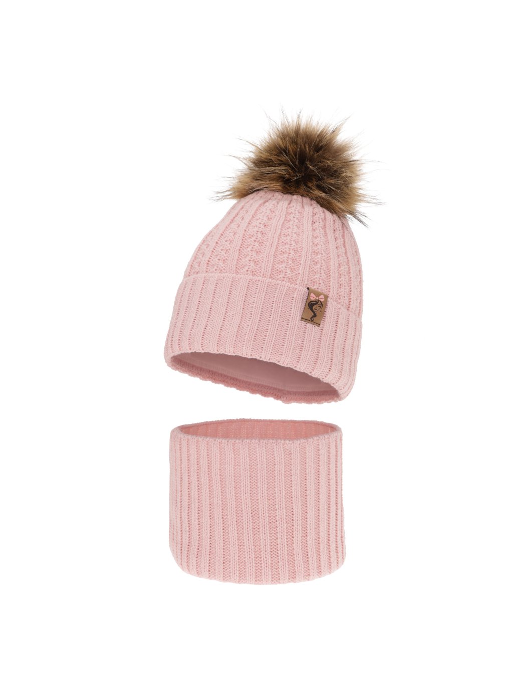 Komplet zimní : čepice a tunel růžový bambulí Larina
