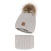 Komplet zimní dívčí: čepice a tunel šedý bambulí Juliette