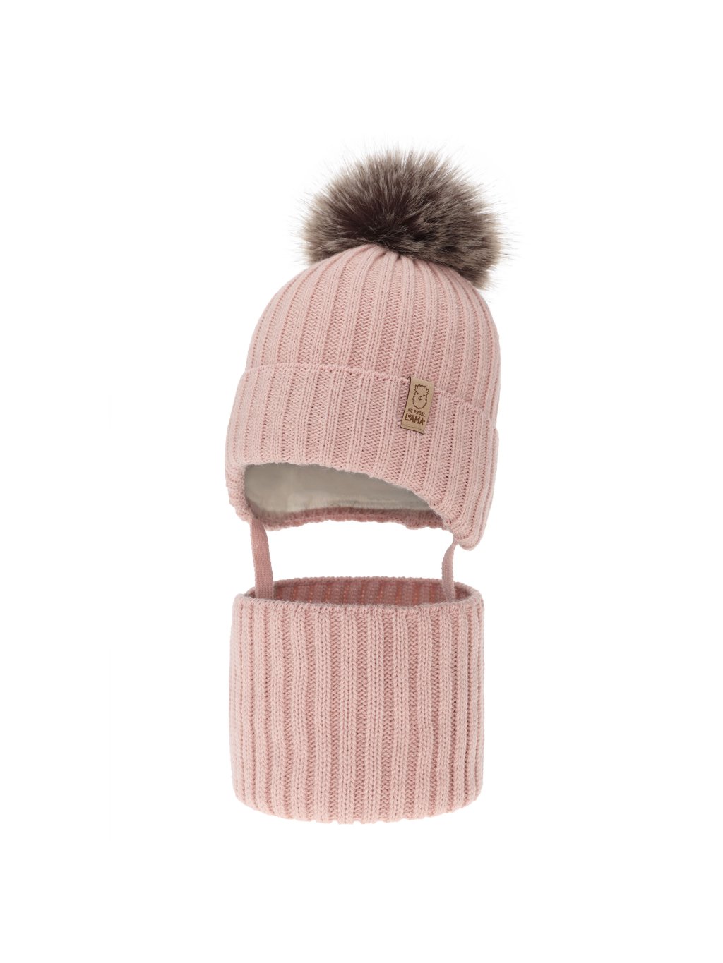 Komplet zimní dívčí : čepice a tunel růžový s bambulou Abigail