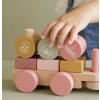 Krásný dřevěný vláček z dílny Little Dutch je potištěn obrázky květin, včelek a broučků z kolekce Flowers. S kostkami různých tvarů a barev může vaše dítě sestavovat různé varianty vagónů.