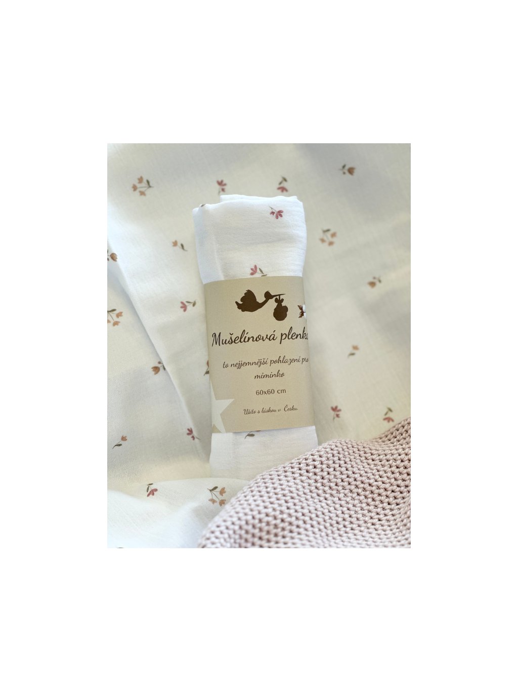 Mušelínová plena pro široké použití při péči o miminko. 60 x 60 cm
