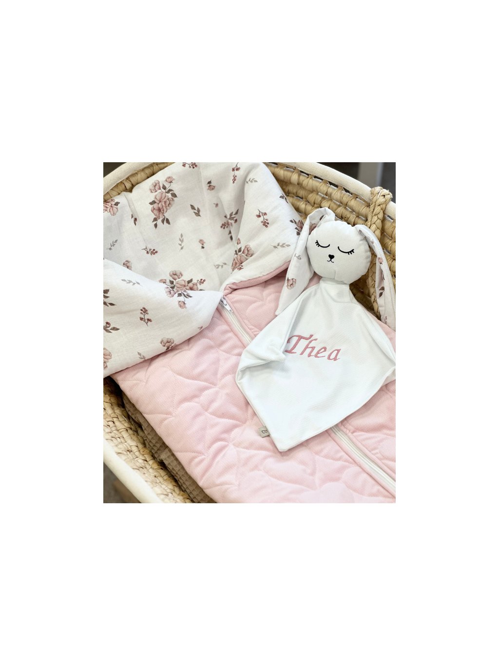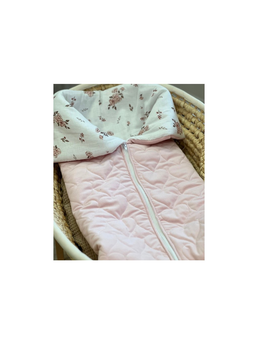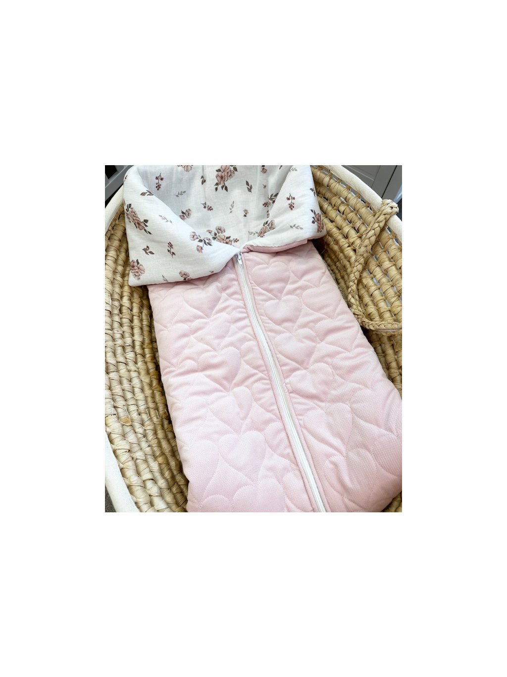 Mušelínový jarní / podzimní fusak do kočárku - světle růžový s kytičkama