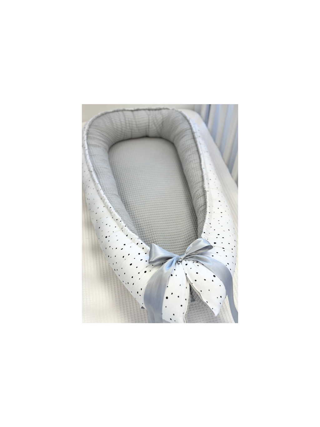 Oboustranné hnízdečko pro miminko - vaflové světle šedé s puntíky