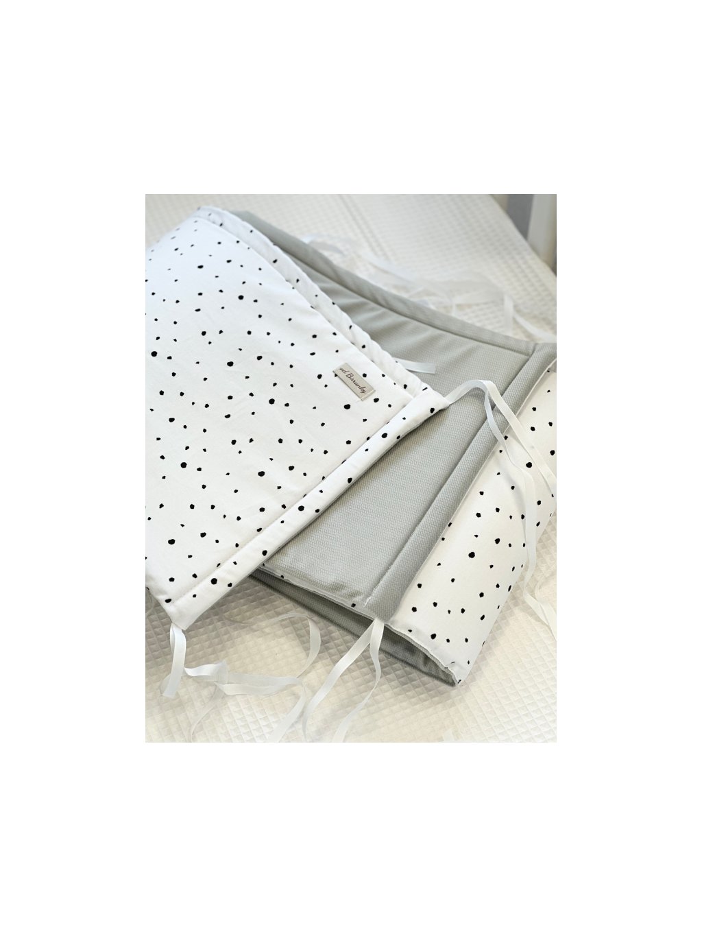 Plochý mantinel - černý puntík se světle šedým velvetem plochý, tenký, s výplní z molitanu
