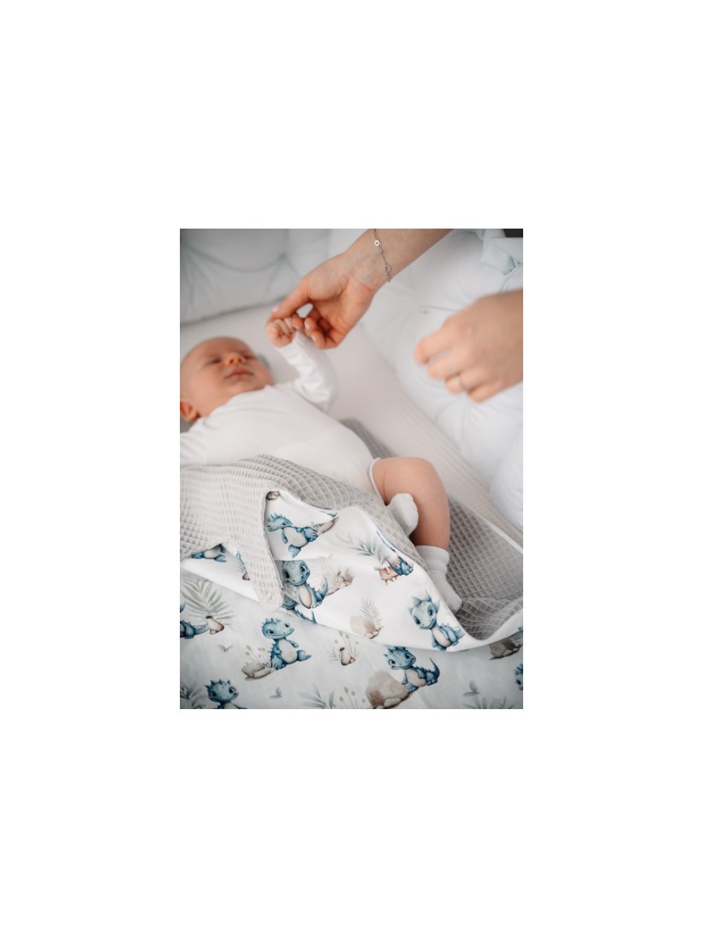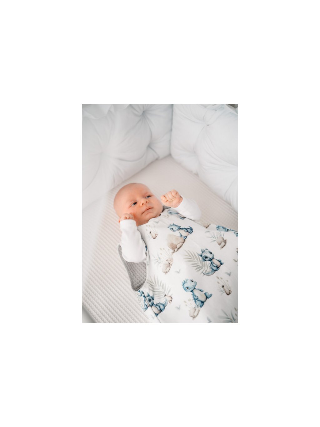 Spací pytel pro miminko v roztomilém vzoru baby dino v kombinaci se světle šedou vaflí