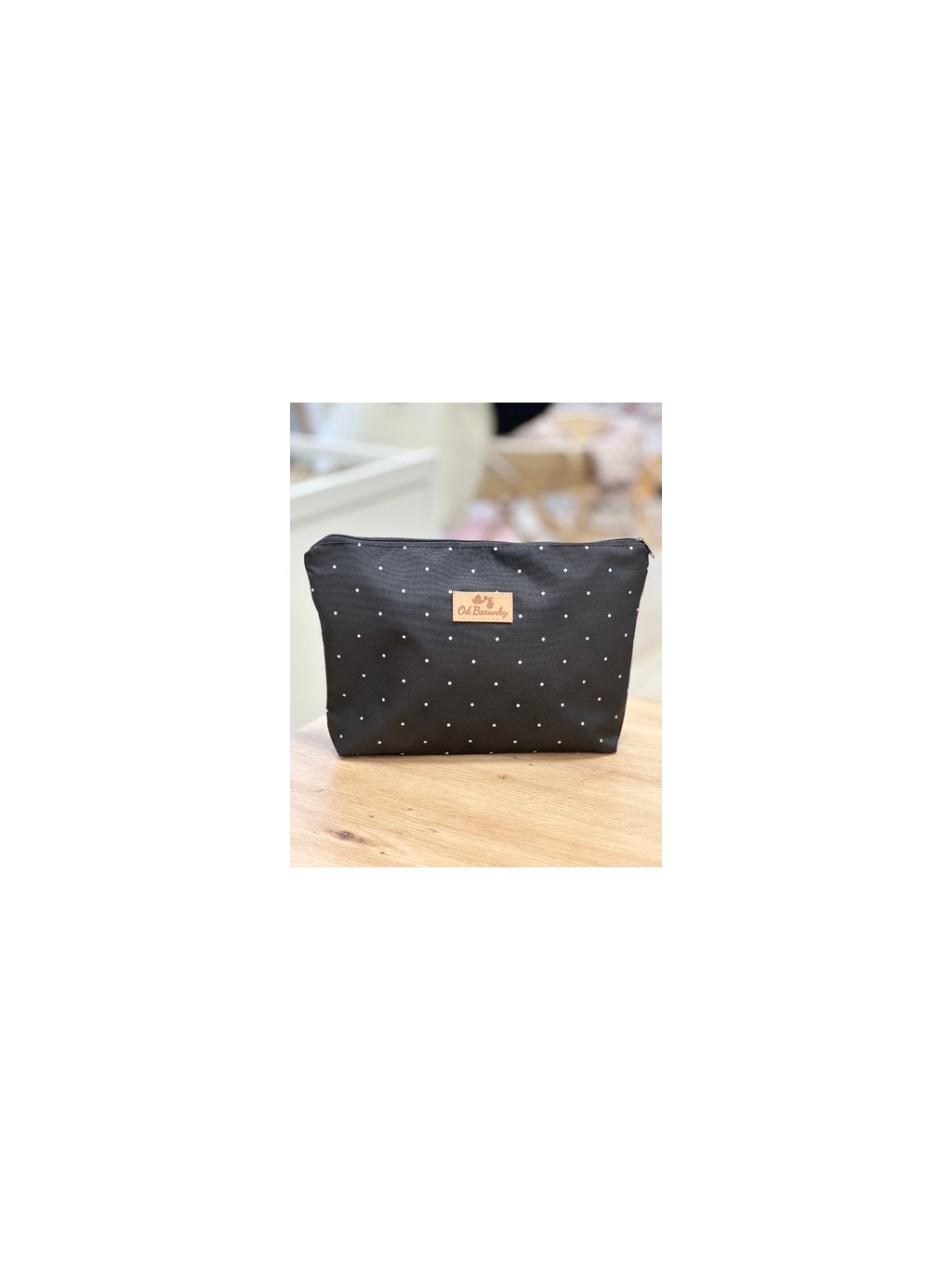 Taštička na potřeby pro miminko - bílý puntík na černé